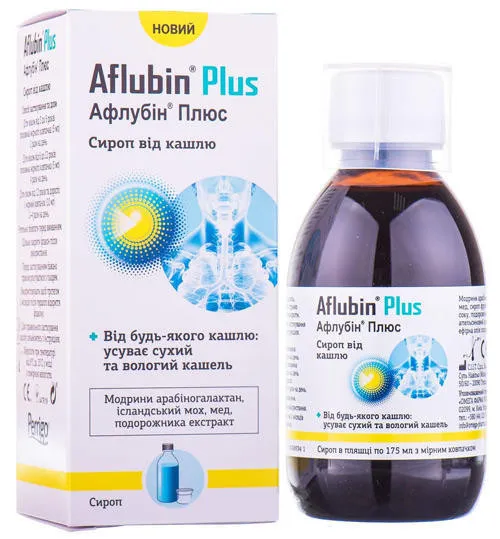 - Aflubin Plus syrup contains Icelandic moss extract, ethyl alcohol, sucrose, and purified water.