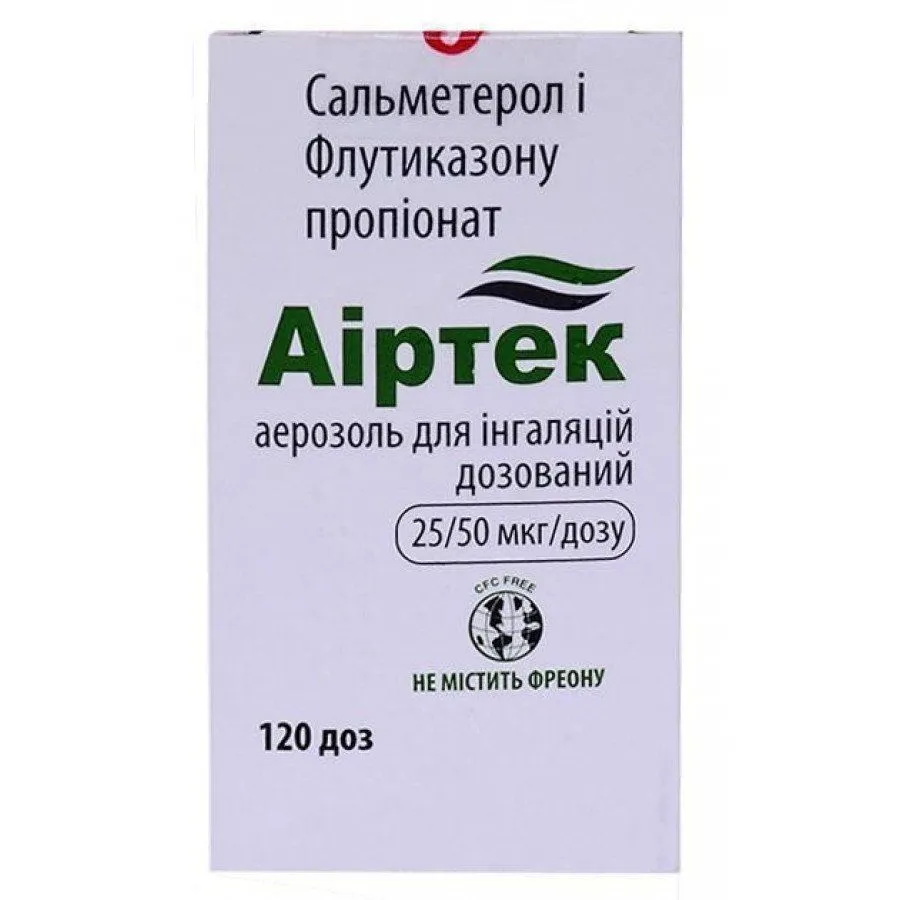 Airtek(salmeterol, fluticasone propionate)aerosolum for inhalation 25 mcg/50 mcg/dose 120 doses №1