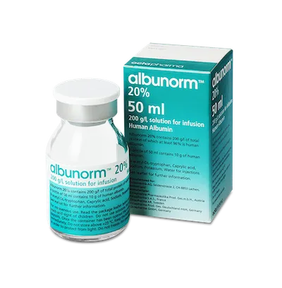Albunorm 20% solution contains human albumin as the active ingredient. It is a sterile, non-pyrogenic solution obtained from human plasma.