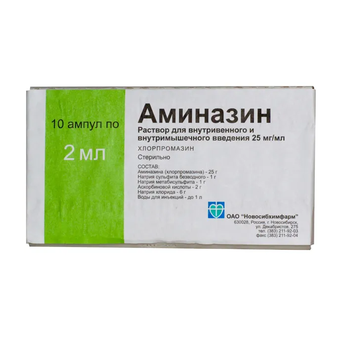 Aminazin (chlorpromazine) solution for injections ampoules 2.5% 2 ml. №10