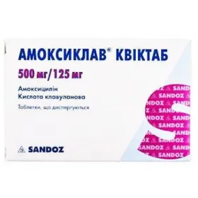 Amoxiclav (amoxicillin) Quicktab tablets 500 mg/125 mg. №20
