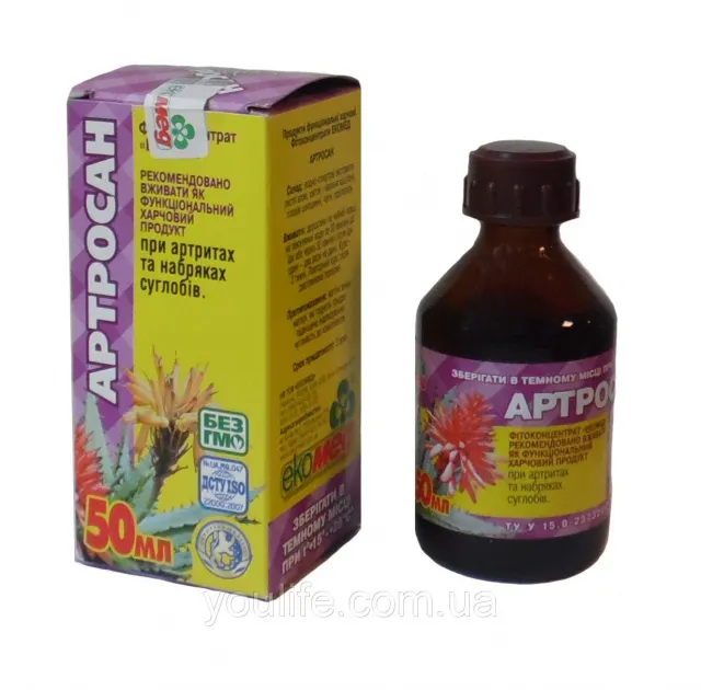 Packaging: Artrosan is available in a 50 ml container with detailed usage instructions provided on the label.