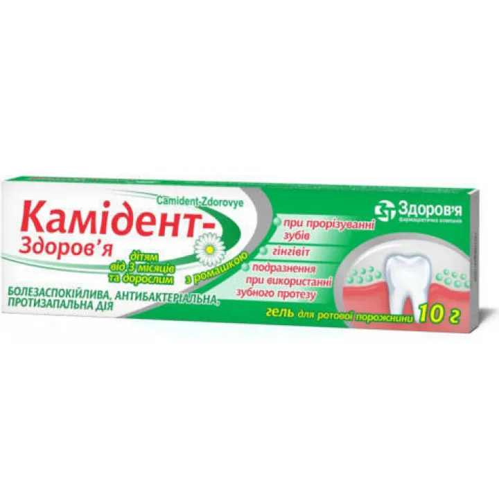 Purpose: Camident gel inhibits bacterial growth to treat gum infections.