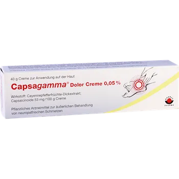 Capsagama cream is available in a 40 g tube for topical application.