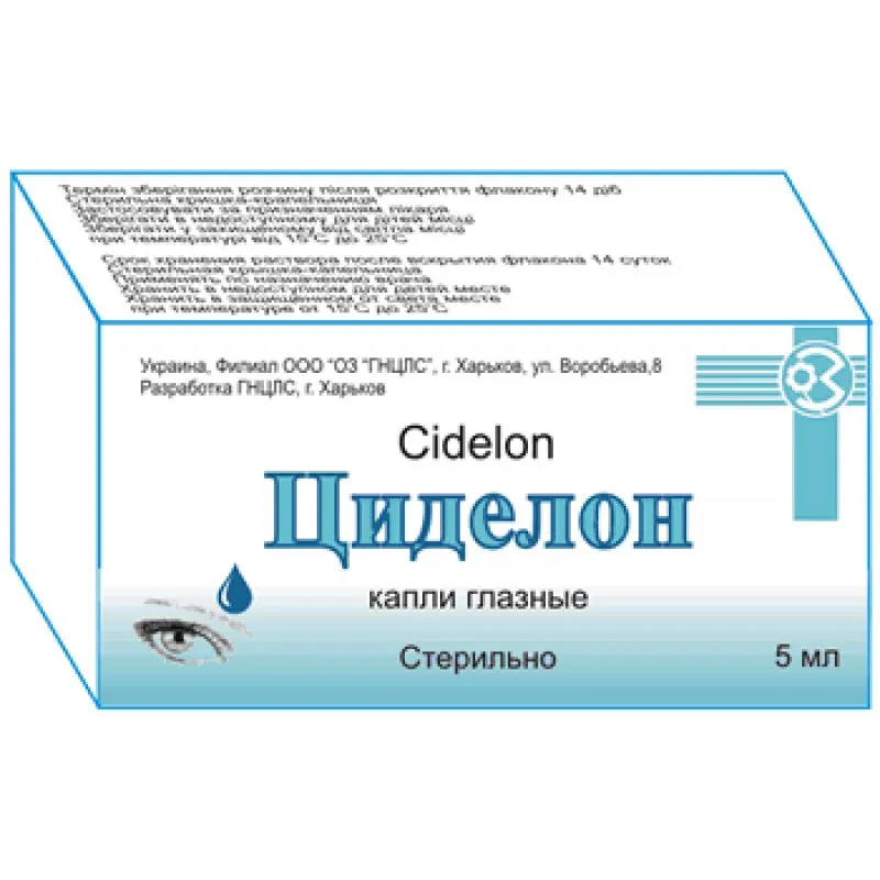 The Cidelon Eye Drops are packaged in a 5 ml container designed for easy and precise instillation, ensuring accurate dosing and product integrity.