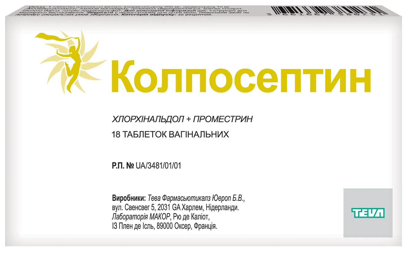 Colposeptin vaginal tablets contain hlorhinaldola and prometryn as active ingredients.