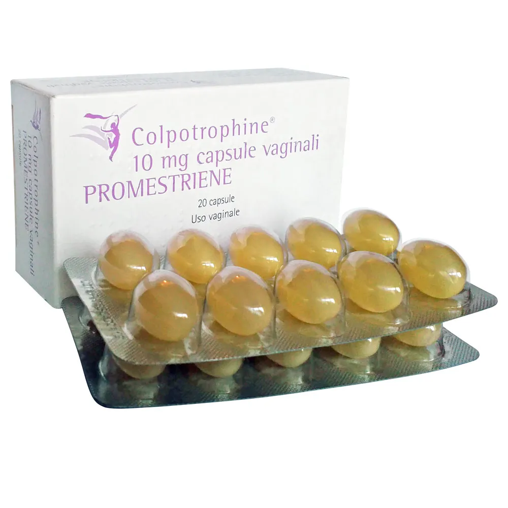 Colpotrofin (prometryn) vaginal capsules are typically packaged in blister packs to maintain product integrity and ensure convenient daily use. Each pack contains 10 capsules for a complete treatment course.