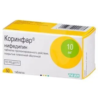 Corinfar (Nifedipine) Tablets with Prolonged Release 10 mg. №50 Vial