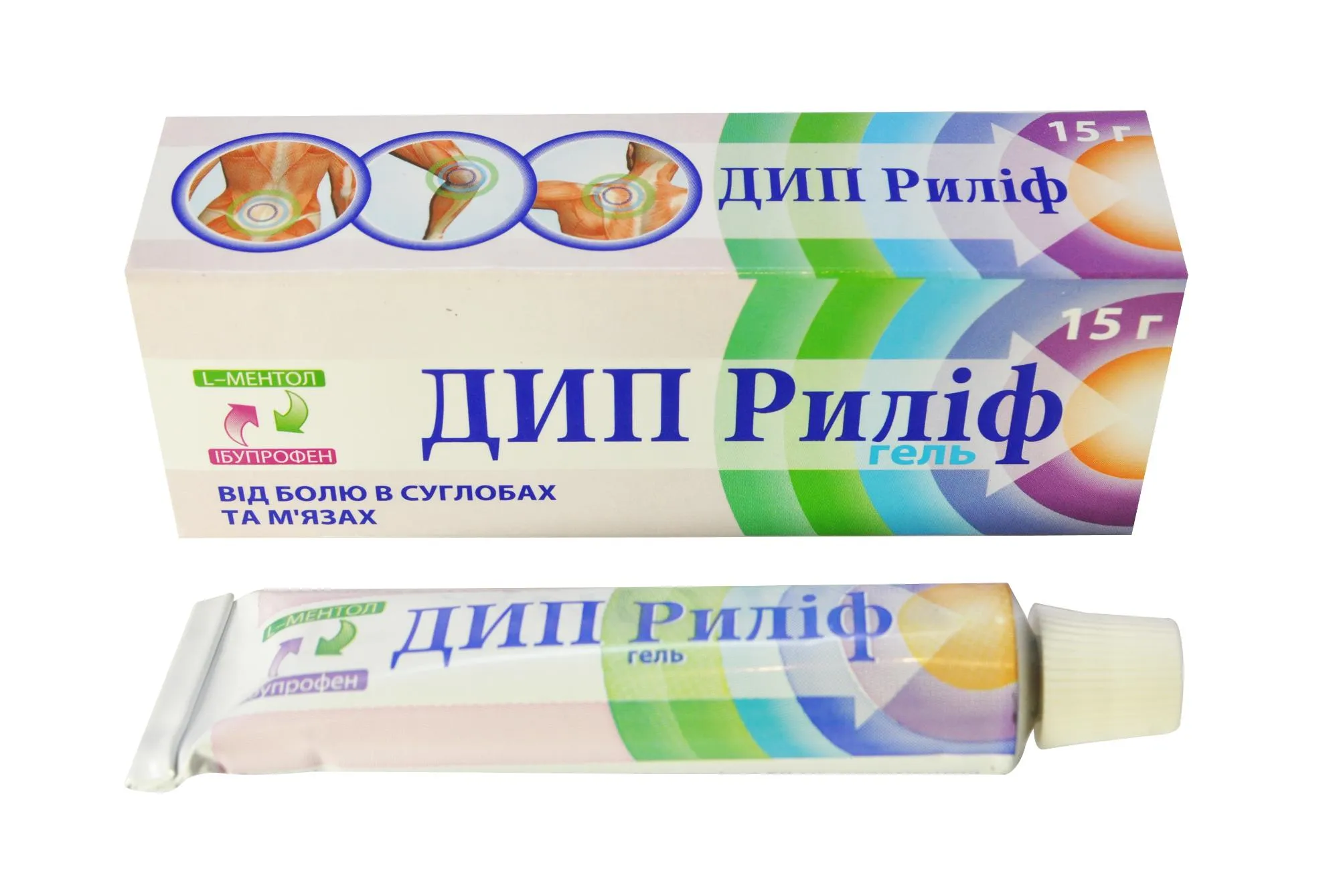 Deep Relief Gel is available in a 15g tube for convenient and precise application. The packaging includes instructions for use and safety precautions.