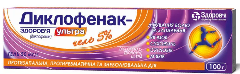 Diclofenak Ultra gel is available in a 100 g tube for topical application. The packaging is designed to ensure convenient and hygienic dispensing of the gel while maintaining product integrity.