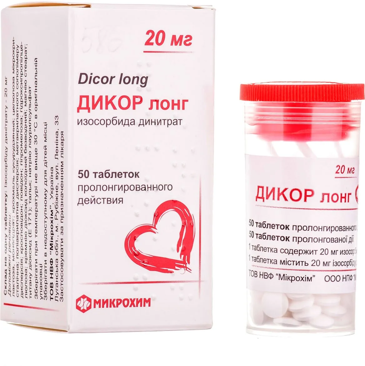 Dicor Long (isosorbide dinitrate) tablets with prolonged release 20 mg. №50
