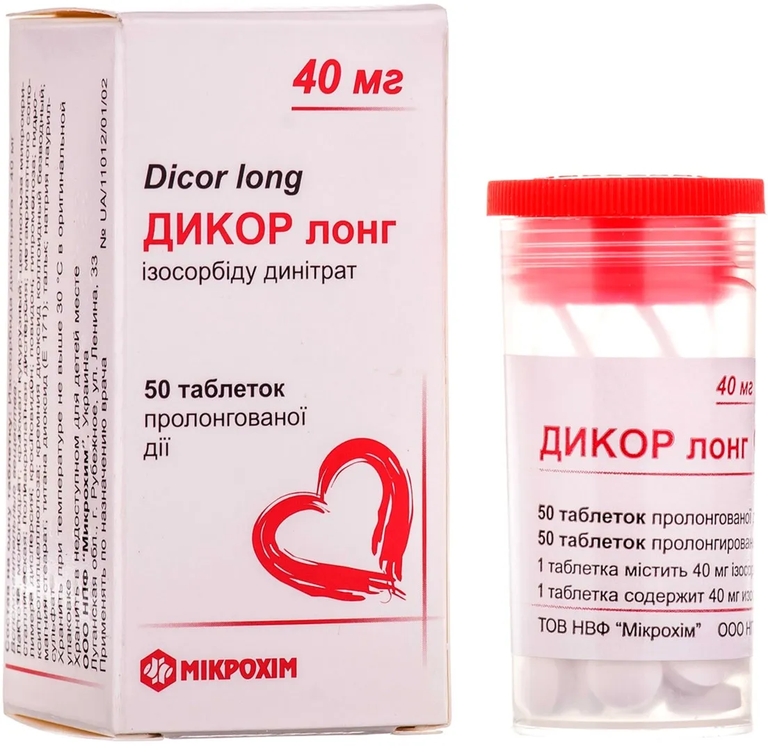 Dicor Long (Isosorbide Dinitrate) Tablets with Prolonged Release 40 mg. №50