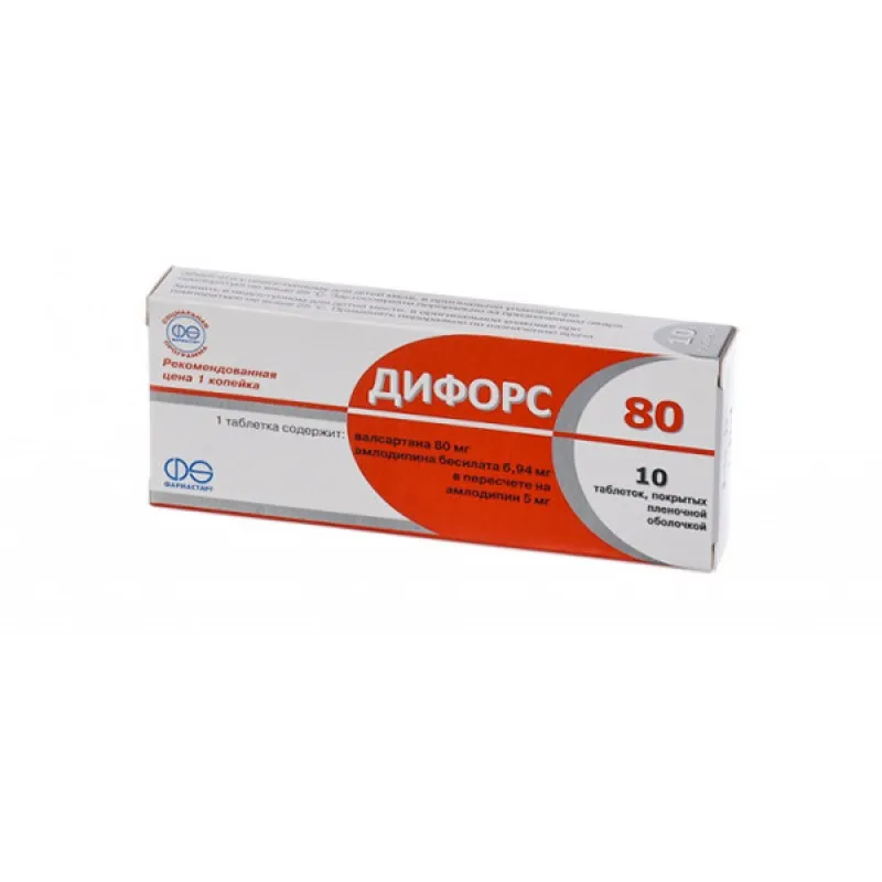 Difors 80 (Amlodipine Besilate and Valsartan) Coated Tablets 5 mg/80 mg. №10