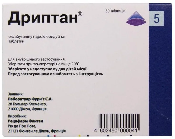 Driptan (Oxybutynin Hydrochloride) Tablets 5 mg. №30