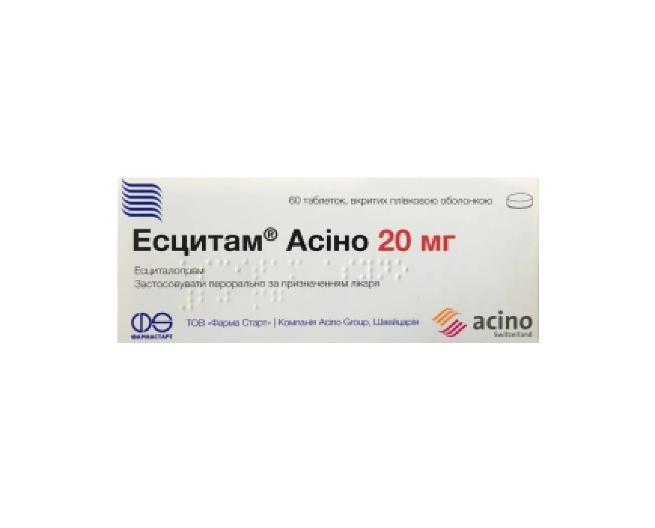 Escitam Asino (Escitalopram) Coated Tablets 20 mg. №60