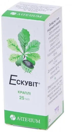 The Escuvit 25 ml. Vial is presented in a sterile glass vial containing 25 ml of the solution for intravenous administration. The packaging is designed to maintain product integrity and sterility until use.