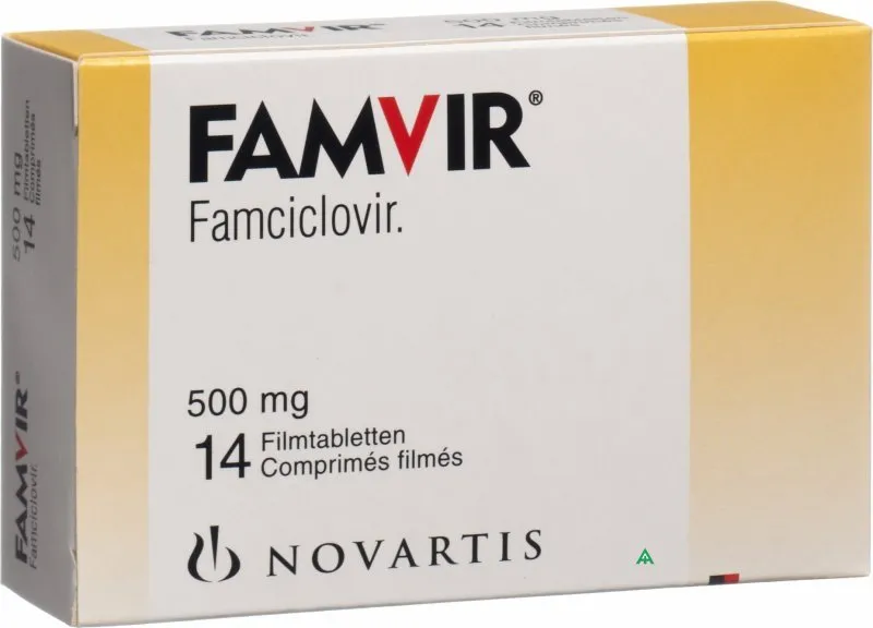 Famvir is supplied in blister packs containing 14 coated tablets of 500 mg strength. Each pack is labeled with the product name, dosage strength, and batch number for identification.
