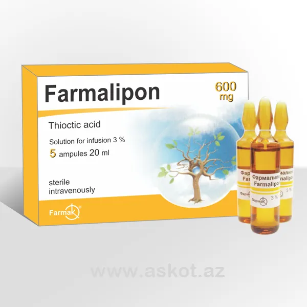 Farmalipon solution for infusions is indicated for the treatment of diabetic neuropathy and other conditions where a-lipoic acid supplementation is necessary.