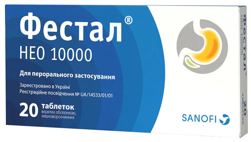 Festal NEO (pancreatin) 10000 enteric tablets №20