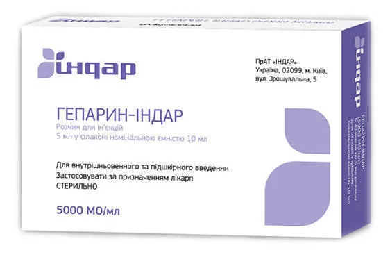 Geparin-Indar Solution for Injections 5000 IU/ml – 5 ml (25000 IU) Vial №5