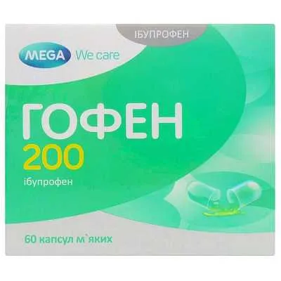 Gofen 400 soft capsules are packed in a container with 60 capsules per pack. The packaging is designed to protect the capsules from light and moisture, ensuring their stability and efficacy.