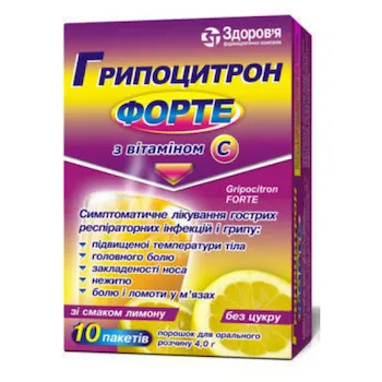 Grippocitron Forte Powder is available in packs containing 10 individual sachets, each pre-measured for easy administration. The packaging is designed to maintain the product’s stability and integrity.