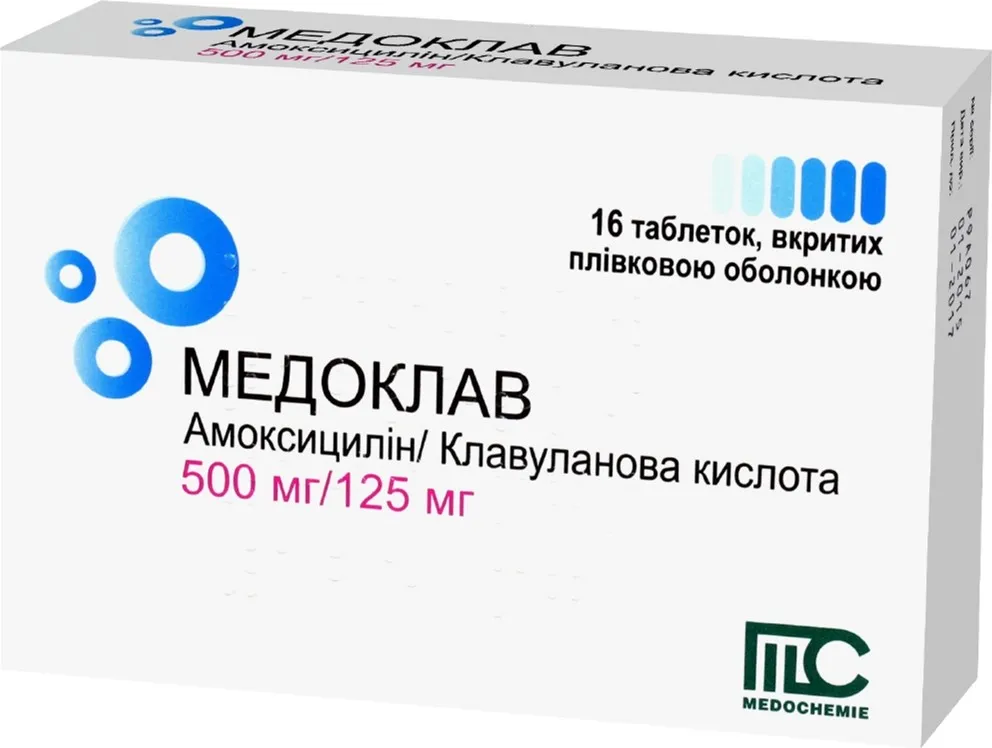 Medoclav (Amoxicillin) Coated Tablets 500 mg/125 mg. №16