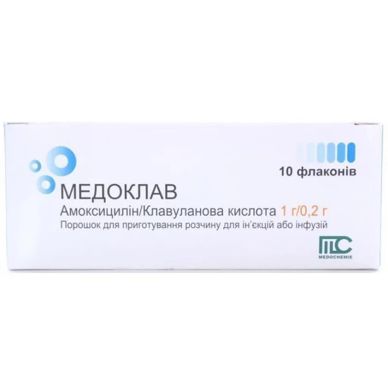 Medoclav (Amoxicillin) Powder for Solution 1g/0.2 g. Vial №10