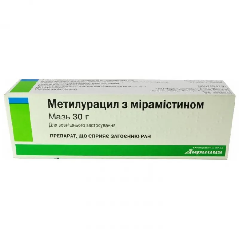 - Indications: Methyluracil with Miramistin ointment is indicated for the treatment of skin irritations, minor cuts, and burns.