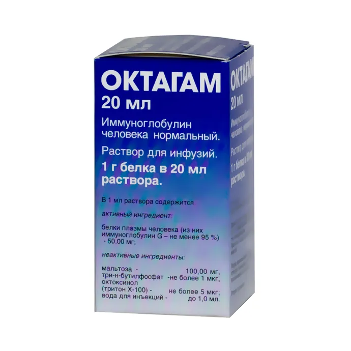 - Octagam solution for infusions 10% contains immunoglobulins obtained from human plasma.