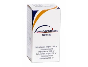 Sulbactomax (Ceftriaxone, Sulbactam) Powder for Solution for Injection 1000 mg/500 mg. 20 ml. №1 Vial