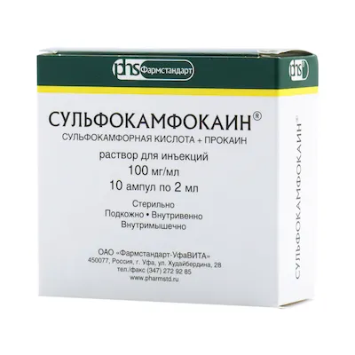 Sulfocamfocain (DL-sulfocamphoric acid) Solution for Injections 10% 2 ml Ampoules №10