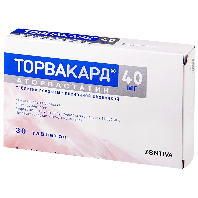 Torvacard Cristal (Atorvastatin) Coated Tablets 40 mg. №30