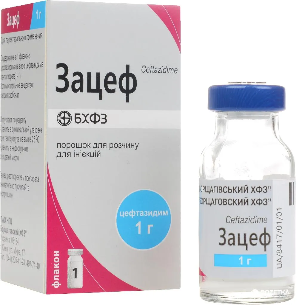 Zacef (Ceftazidime) Powder for Solution for Injections 1g. №1 Vial